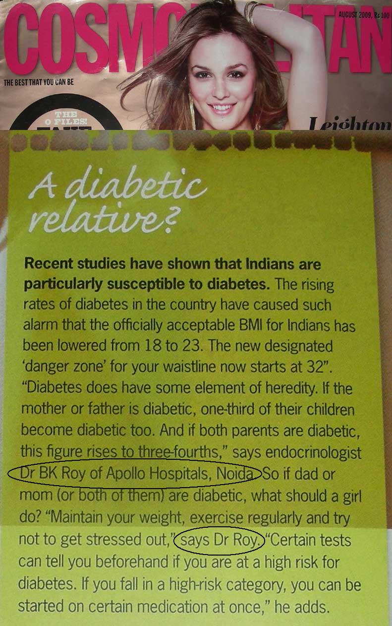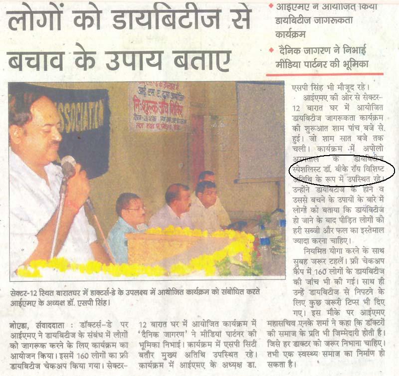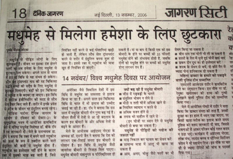 Dr. B.K. Roy's Interview on diabetes in Dainik Jagaran