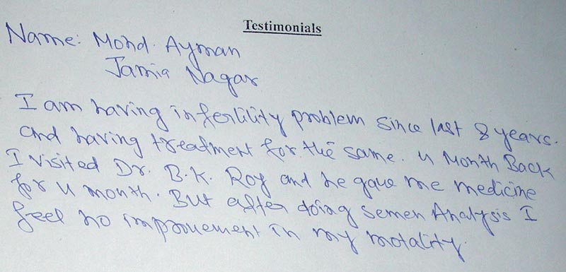 (Note: Name & Place mentioned in the testimonials have been changed by the patient to hide the identity but treatment response mentioned by him/her is real.)